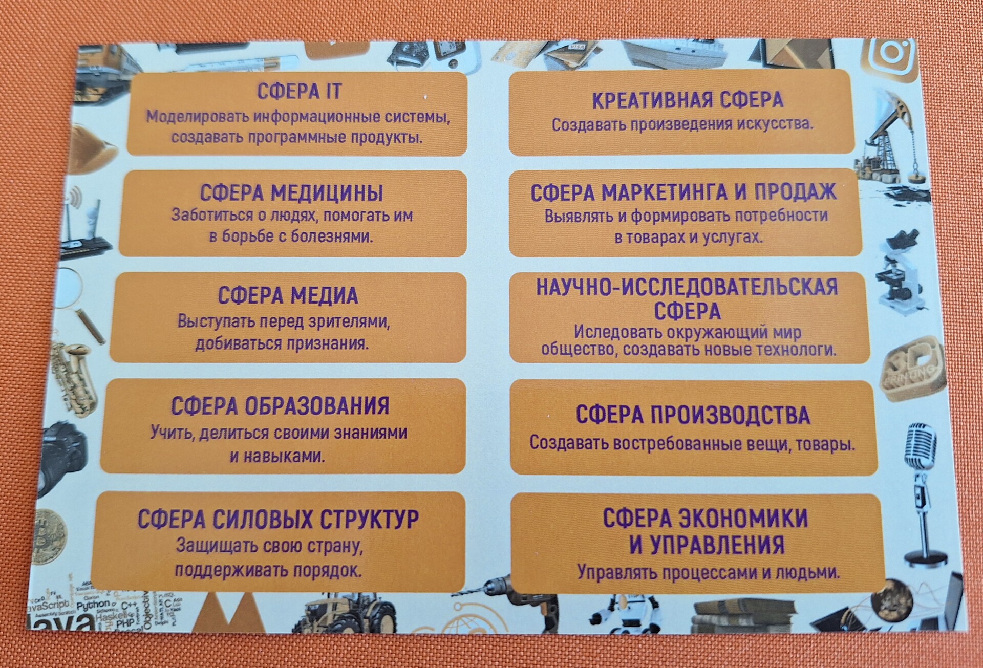 2) 1 карта с описанием каждой из 10 сфер деятельности