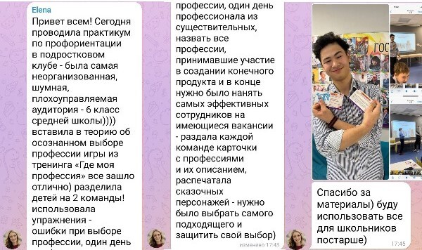 Я прошла много обучений по ведению консультаций, программ, групп в профориентации и получила много опыта внедрения этих знаний, прежде чем начинать делиться своими продуктами с коллегами.