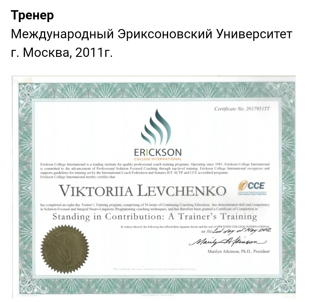 Тренер по профориентации (Международный Эриксоновский университет - тренер, Ольга Колзина "Профориентация как игра" - тренер).