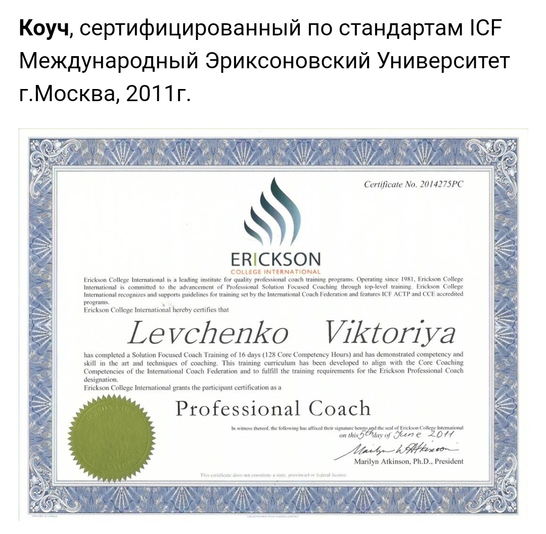 Я психолог, профессиональный коуч по стандартам ICF, у меня высшее образование по психологии.